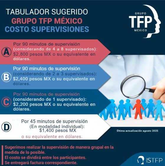 A. Por 90 minutos de supervisión (considerado de 4 a 8 supervisandos): $2,800 MXN o equivalente en dólares